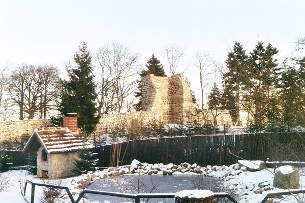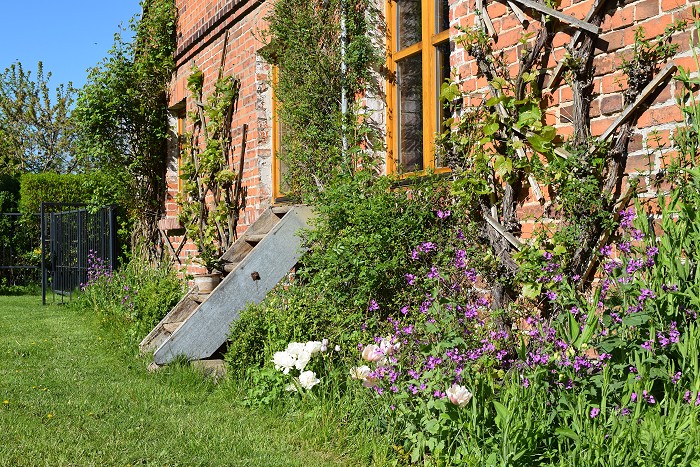 Landschaftsgarten Christianenhof - bepflanzte Ziegelsteinmauer