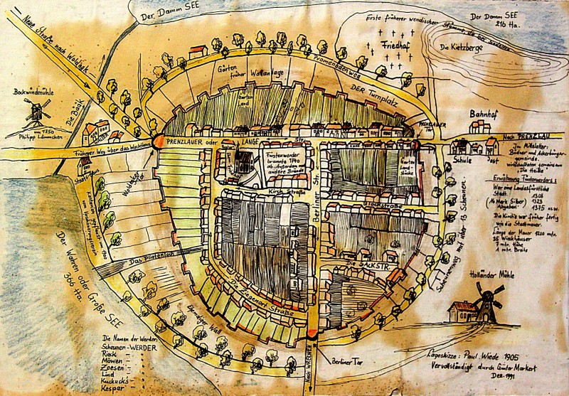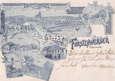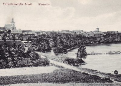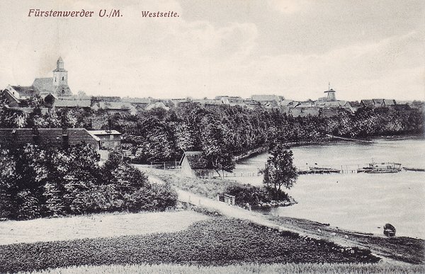 Fürstenwerder – einst Vorstenwerder – vorderstes Werder – wurde 1319 erstmals urkundlich erwähnt und besaß als Wohn- und Arbeitsort, vor allem von Handwerkern und Ackerbürgern, bis 1817 das Stadtrecht. Das Auf und Ab einer wechselvollen Geschichte ist auch an diesem so idyllisch wirkenden Platz nicht spurlos vorübergegangen.
